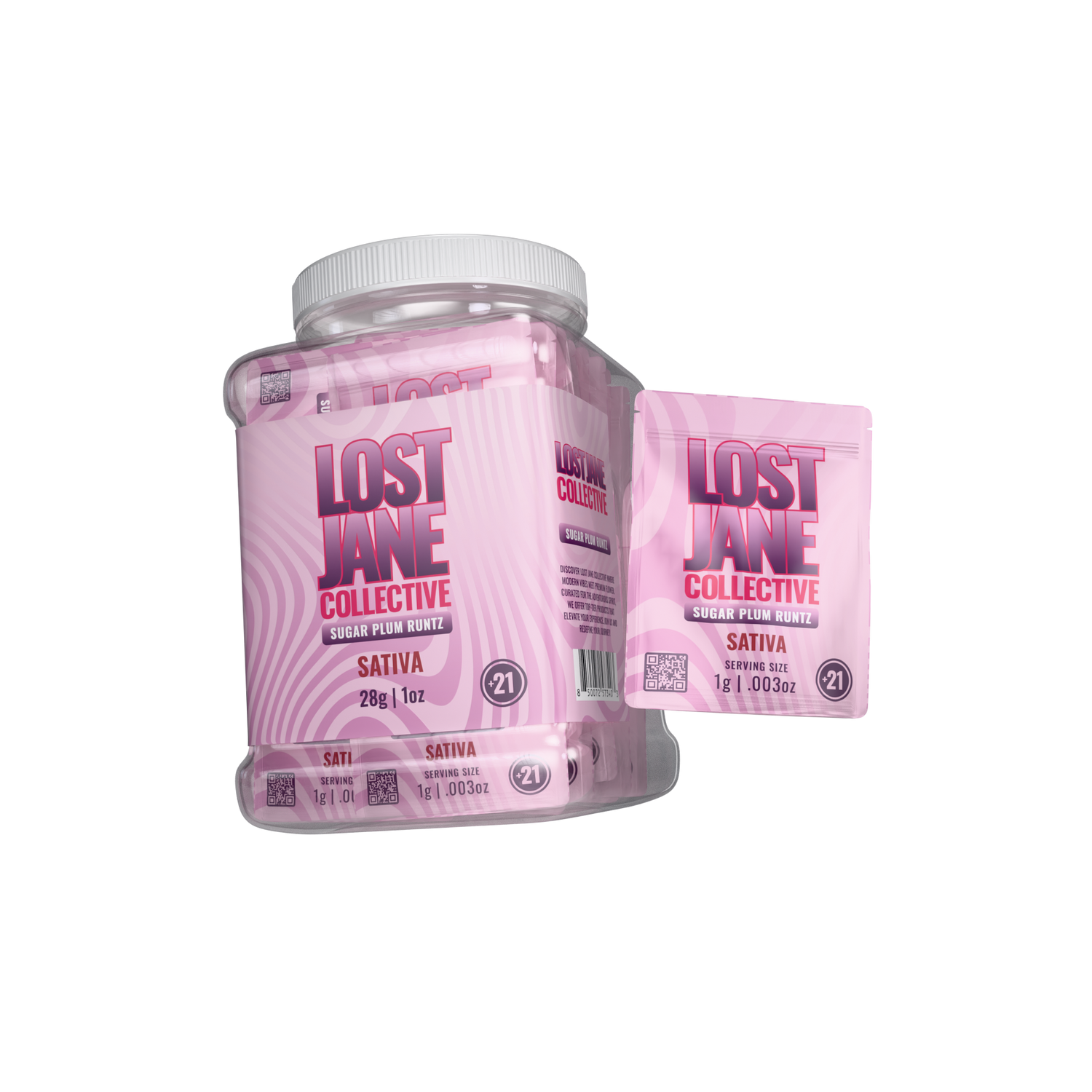 Lost Jane Exotic THCa Flower in 28-count jars brings convenience and flexibility to the sales counter. Each jar contains 28 individually sealed 1-gram bags, offering customers high-quality flower with freshness sealed in every pouch. Designed for retailers who value premium presentation, easy portioning, and strong visual appeal, this format ensures fast turnover and repeat sales across multiple strains.