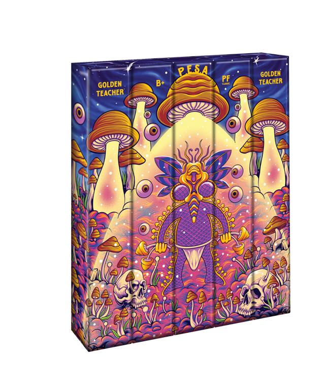 Golden Teacher: Golden Teacher is a popular cultivated strain of Psilocybe cubensis, one of the world's best-known hallucinogenic mushrooms. The name reflects this strain's light brown, yellowish gold top caps.